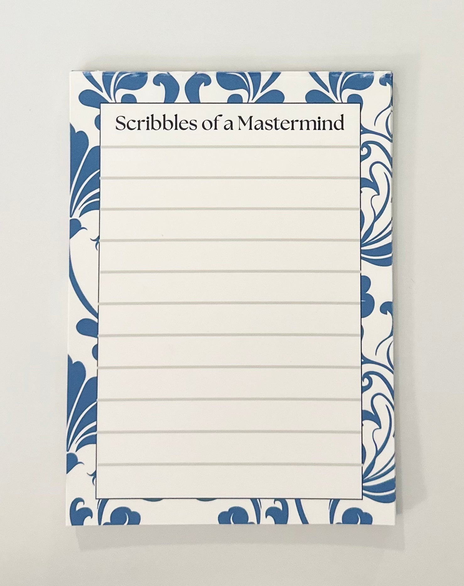 Every brilliant idea starts with a scribble-and this notepad is made for them all. With its elegant blue paisley border and the confident title, this compact notepad is perfect for plotting genius plans, jotting down sudden inspiration, or organizing thoughts with style. whether your a boss, a creator, or just a list-lover with a million tabs open in your brain-this pad is your space to think big.